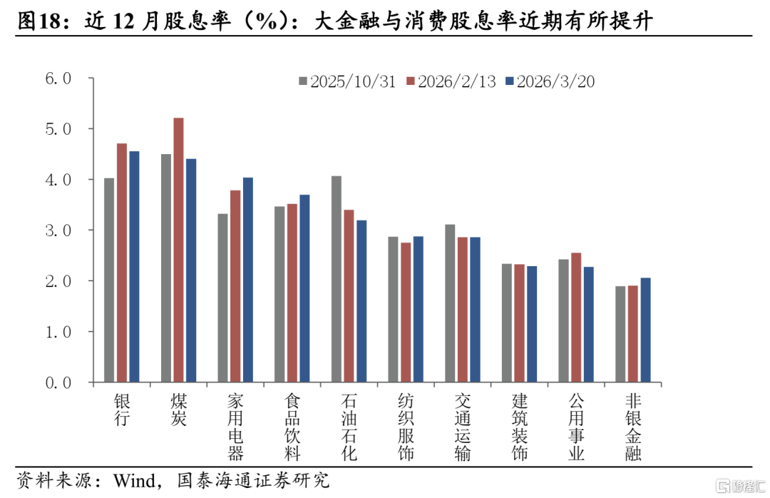 ▶行业比较:金融和稳定依旧首选,中国科技制造与稳定内需是打破滞胀风险叙述的关键。1)金融与稳定板块:市场重要稳定器,高股息率有配置价值,推荐:银行/电力/高速公路/煤炭。2)科技制造与能源转型:中国具有全球竞争力与成本优势的资本品与设备类公司受益能源冲击与转型,推荐:电力设备/新能源车/工程机械。AI空间广阔,2026年中国加大科技投入,有望推动国产线加速增长。推荐:半导体/通信设备/机械设备。3)内需价值:政策部署稳定投资,叠加通胀回升有望拉动补库需求,推荐:建材/建筑/酒店/大众品。
